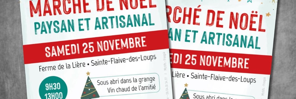 Mise en page d’une affiche pour un marché de Noël paysan et artisan (Motif : freepik) – 2023