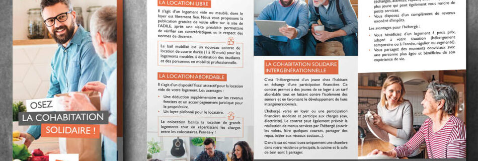 Plaquette et flyer pour l’Adile de Vendée, projet Cohabitation Solidaire Intergénérationnelle – 2020