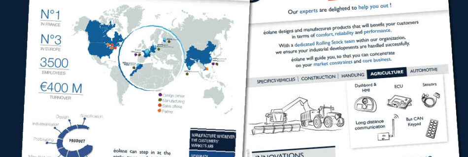Plaquette de présentation, croquis et schémas pour l’entreprise Eolane – 2016